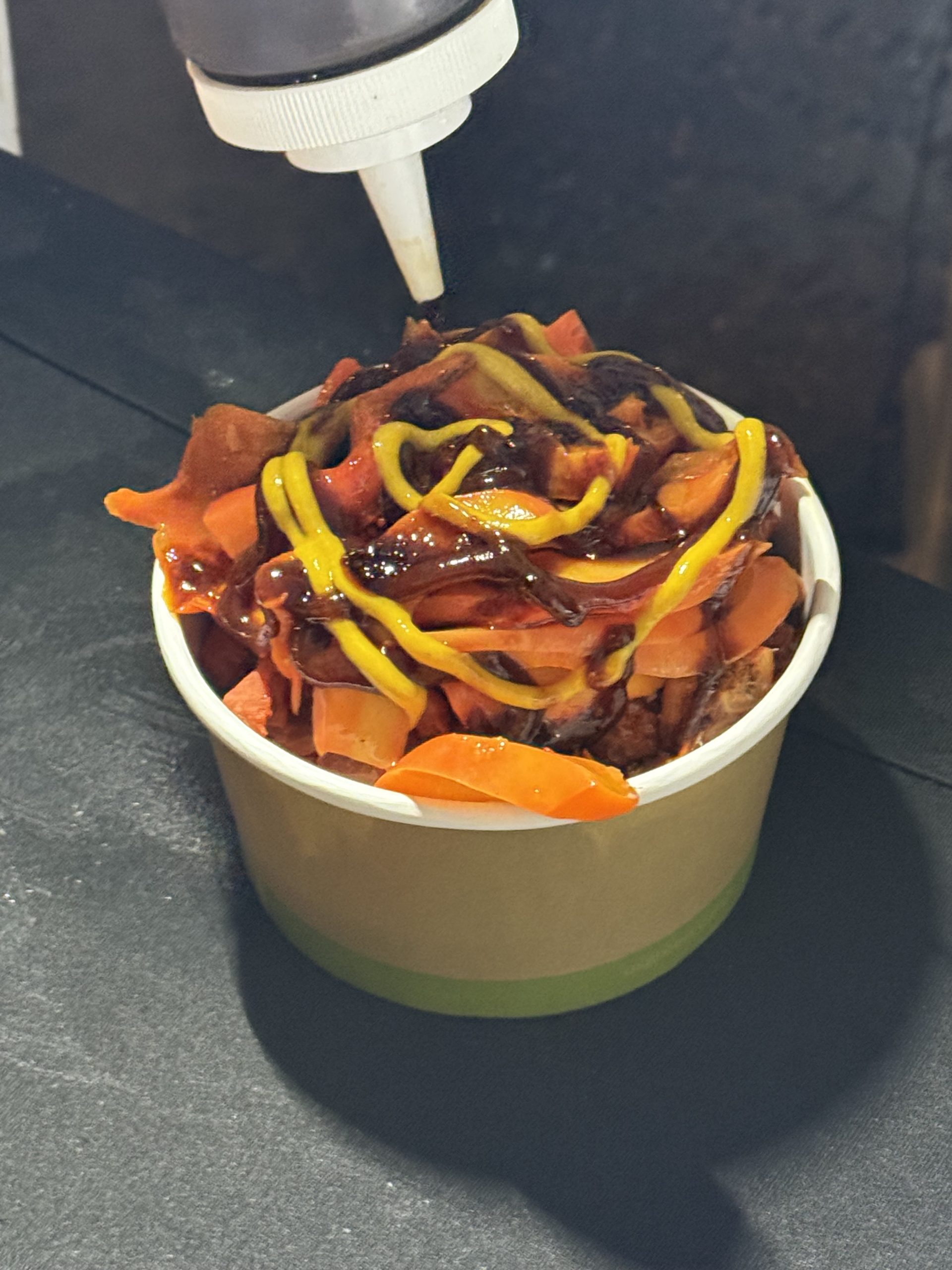 Sweet sauce(ketchup(water, tomato, sugar, modified starch, spirit vinegar, salt, colour(E120 & E150a) ; sweet bean paste(water, wheat flour, soybean, salt, preservative(E202) ; plum sauce(sugar, plum, rice vinegar, water, potato starch, modified starch (E1442) ; garlic, acidity regulator(E330) ; colour(E160a))